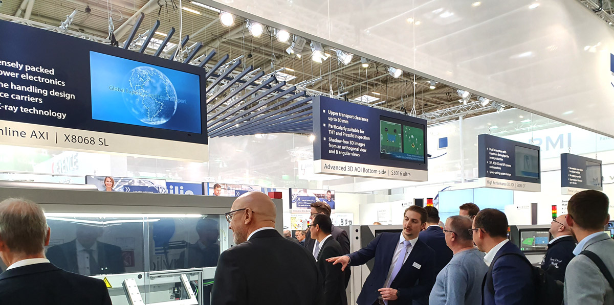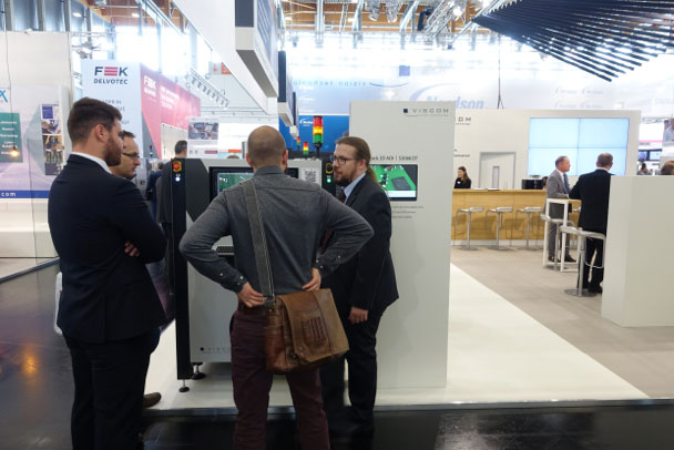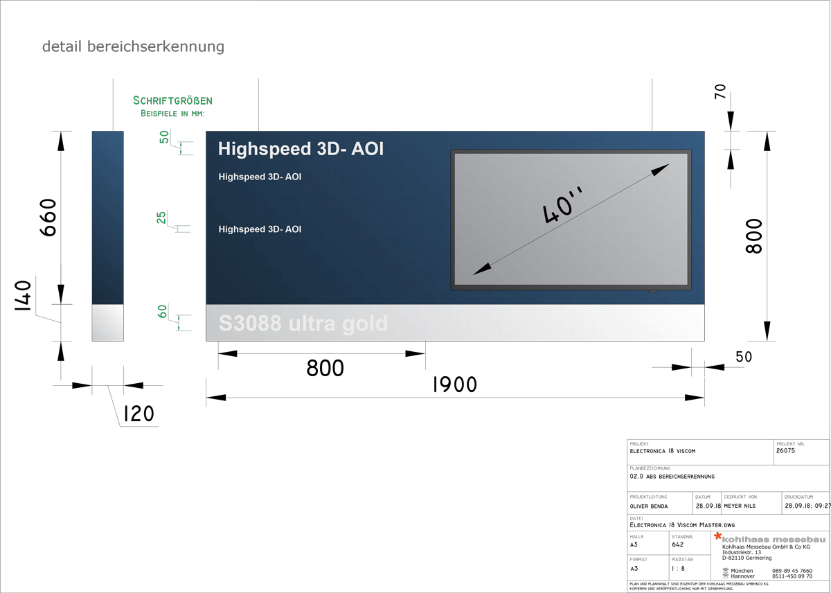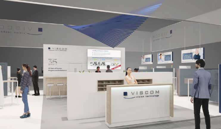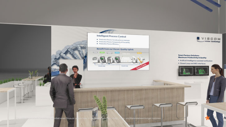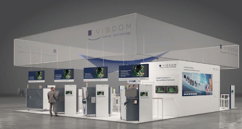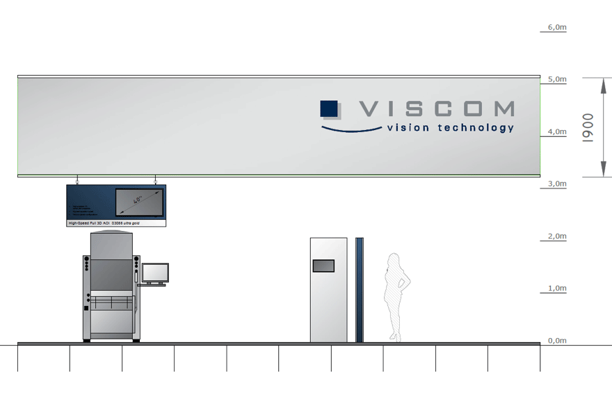 Viscom Messestände sollen stark, hell und kühl ausgeleuchtet sein. Besonderer Fokus liegt auf der optimalen Ausleuchtung der Exponate. Die Farbtemperatur sollte sich im Bereich neutralweiß bewegen.