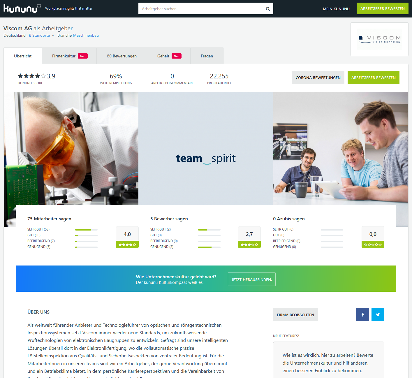 Das Arbeitgeberbewertungsportal kununu ist direkt mit XING verknüpft und dient potenziellen neuen Mitarbeitern zur Orientierung.