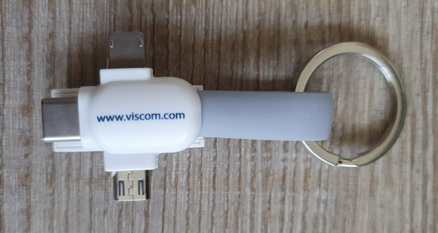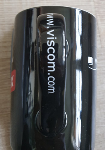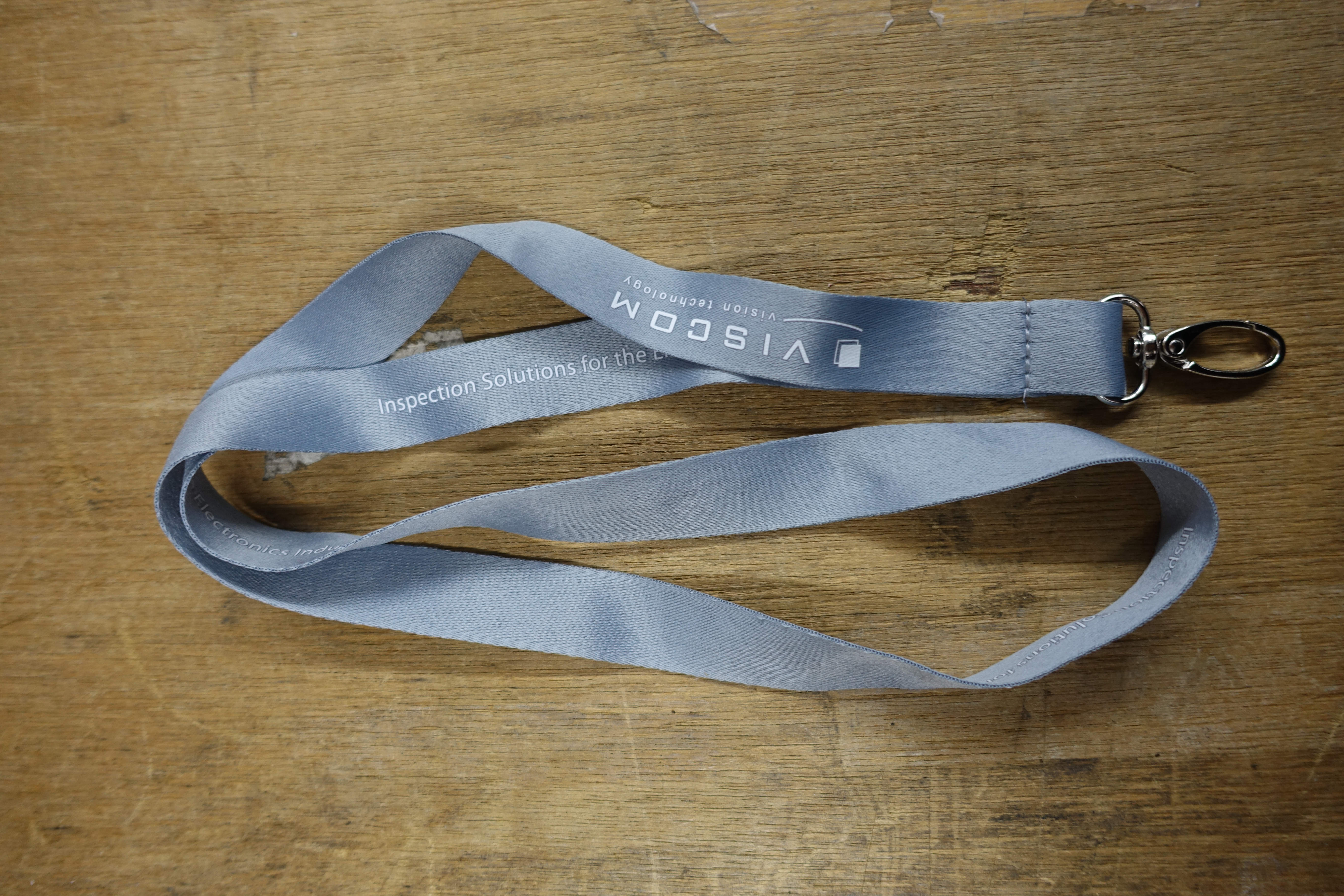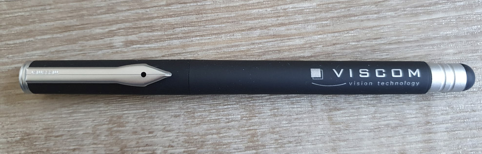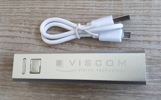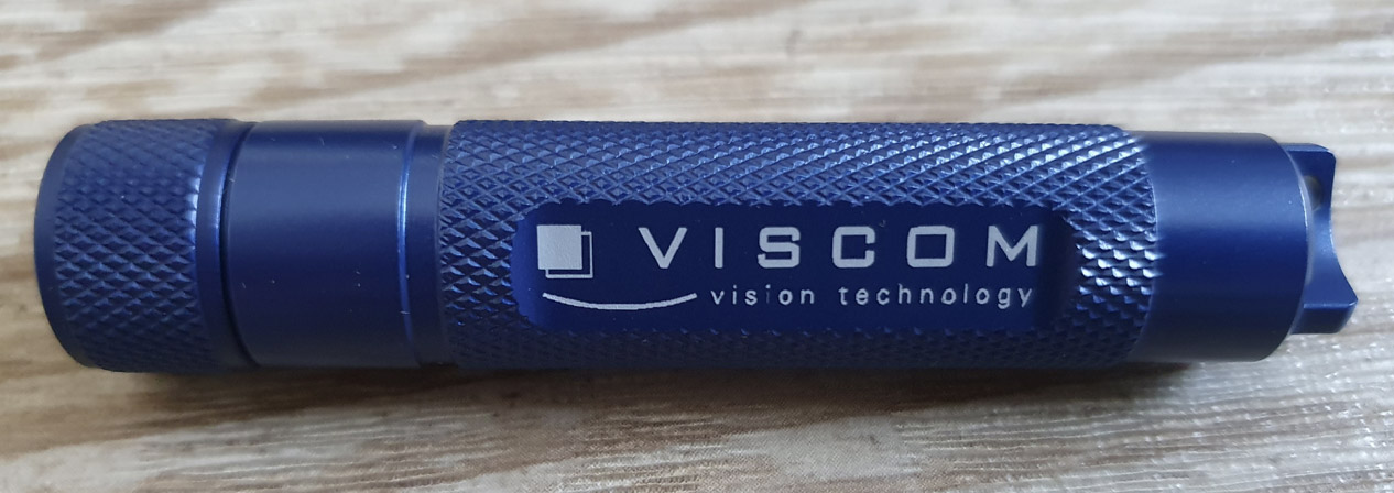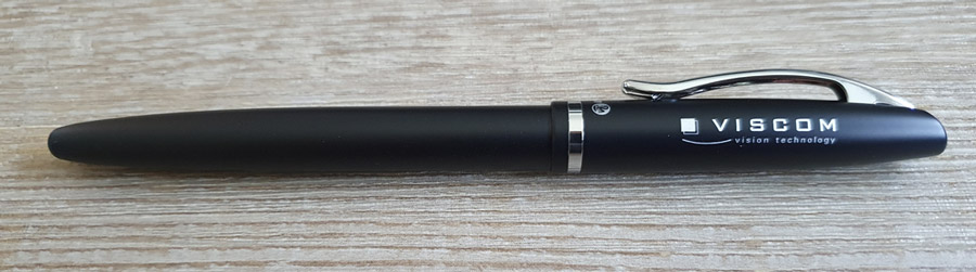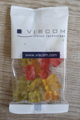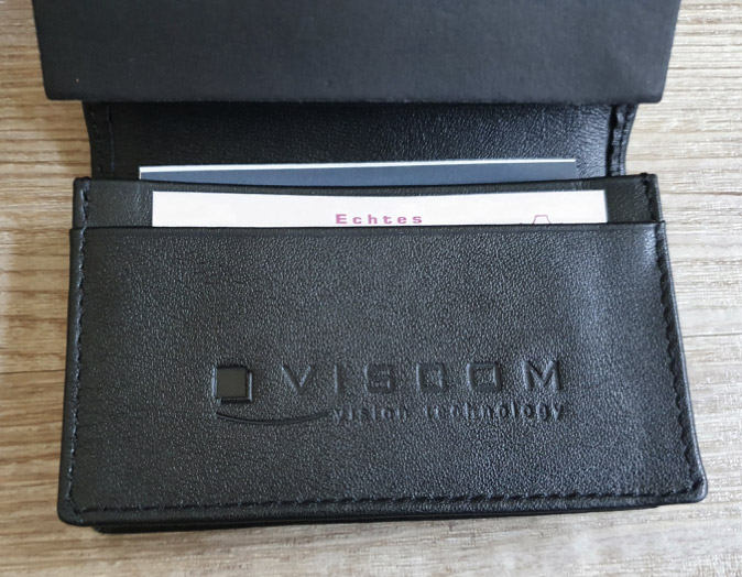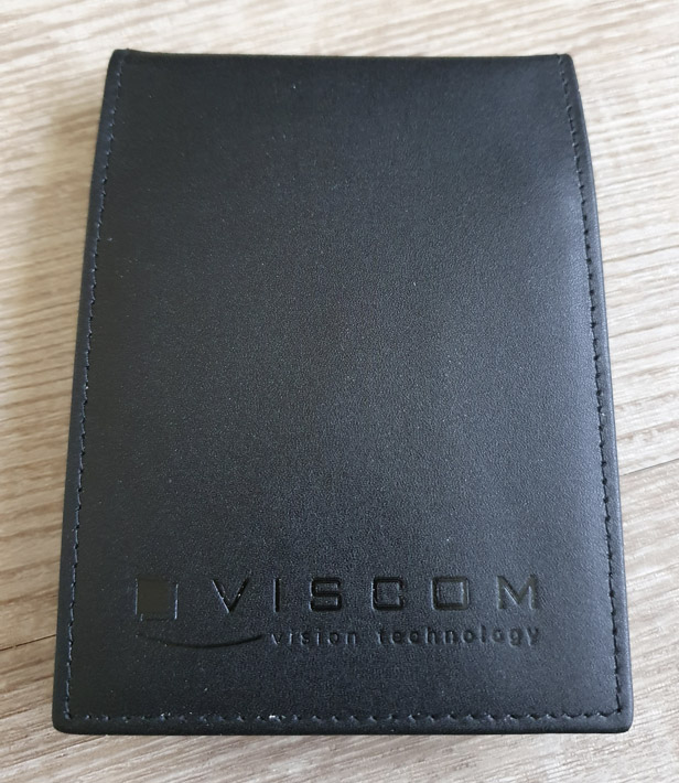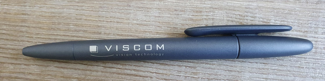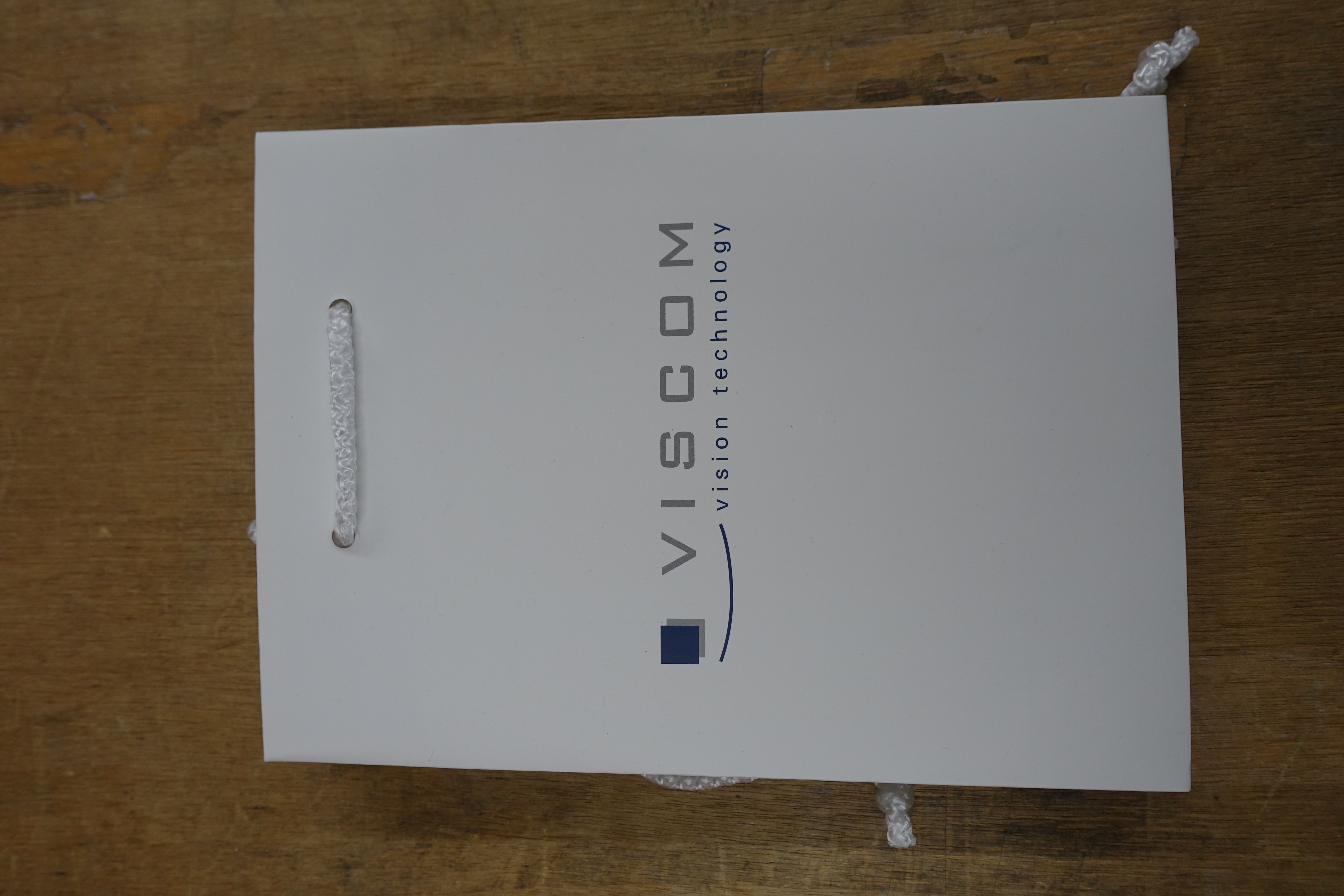 Aufdruck: Viscom Logo (rechts), URL (Rückseite)