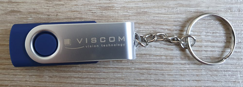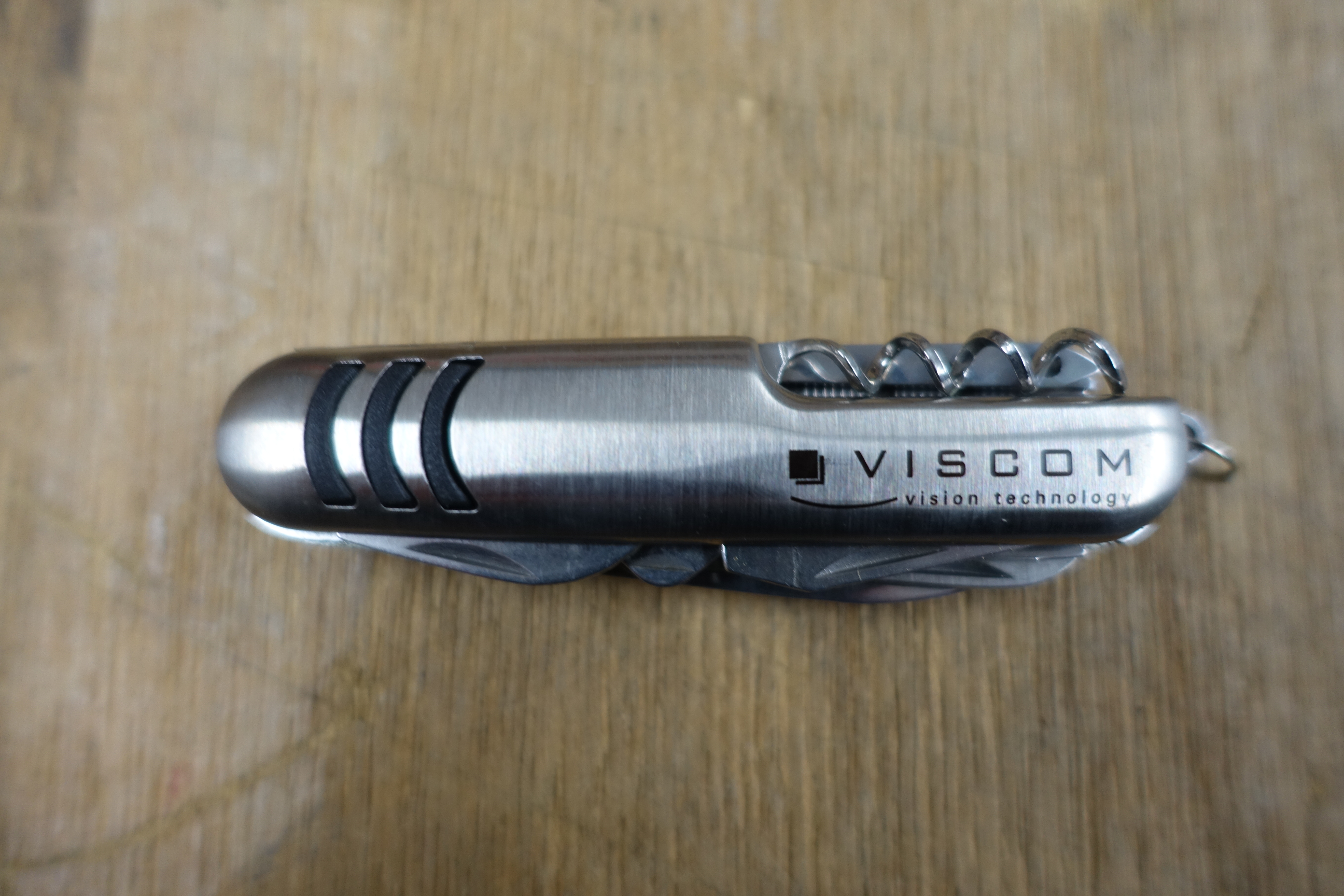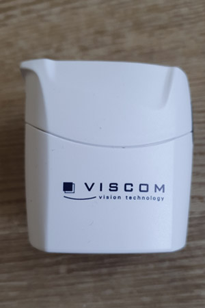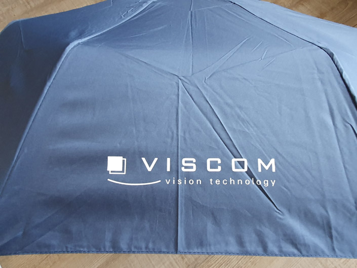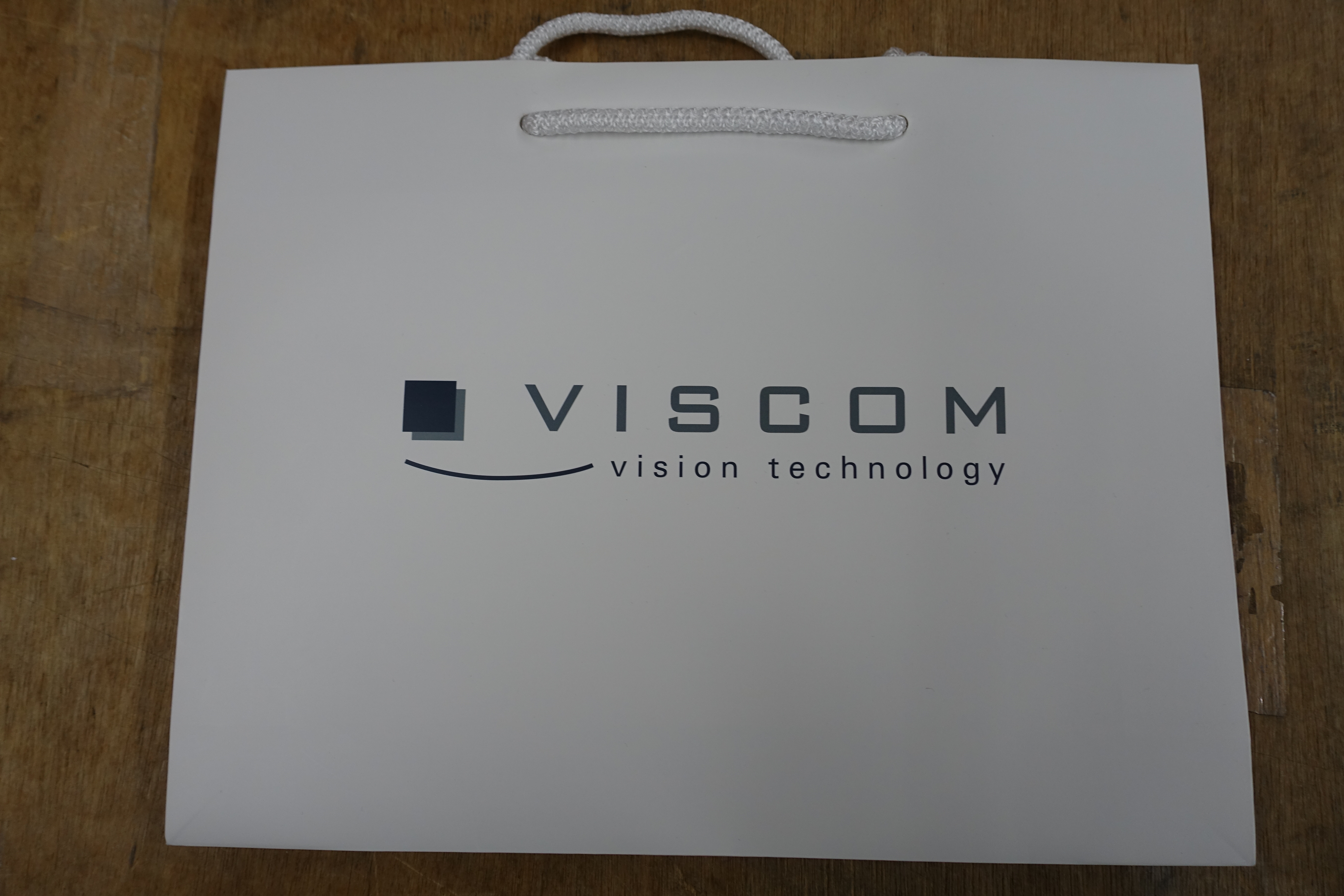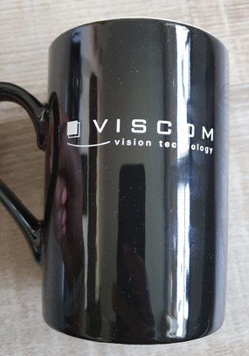 Aufdruck: Viscom Logo, URL, Info Headquarters