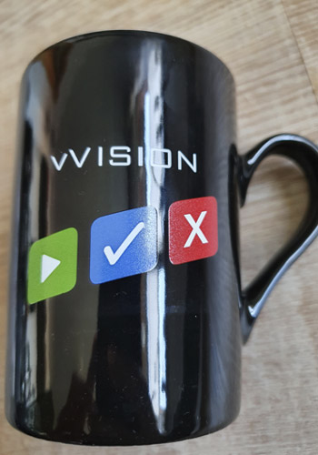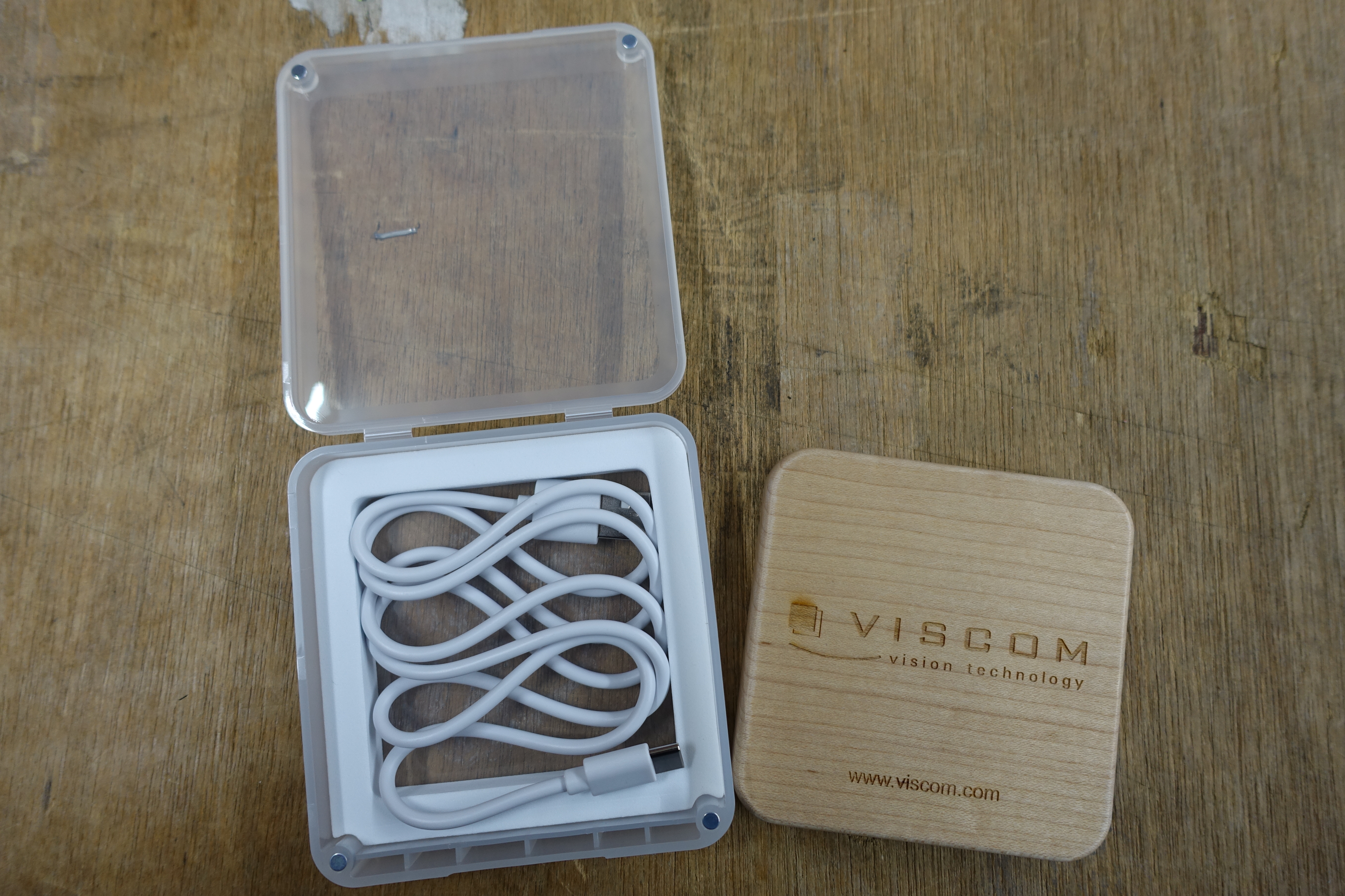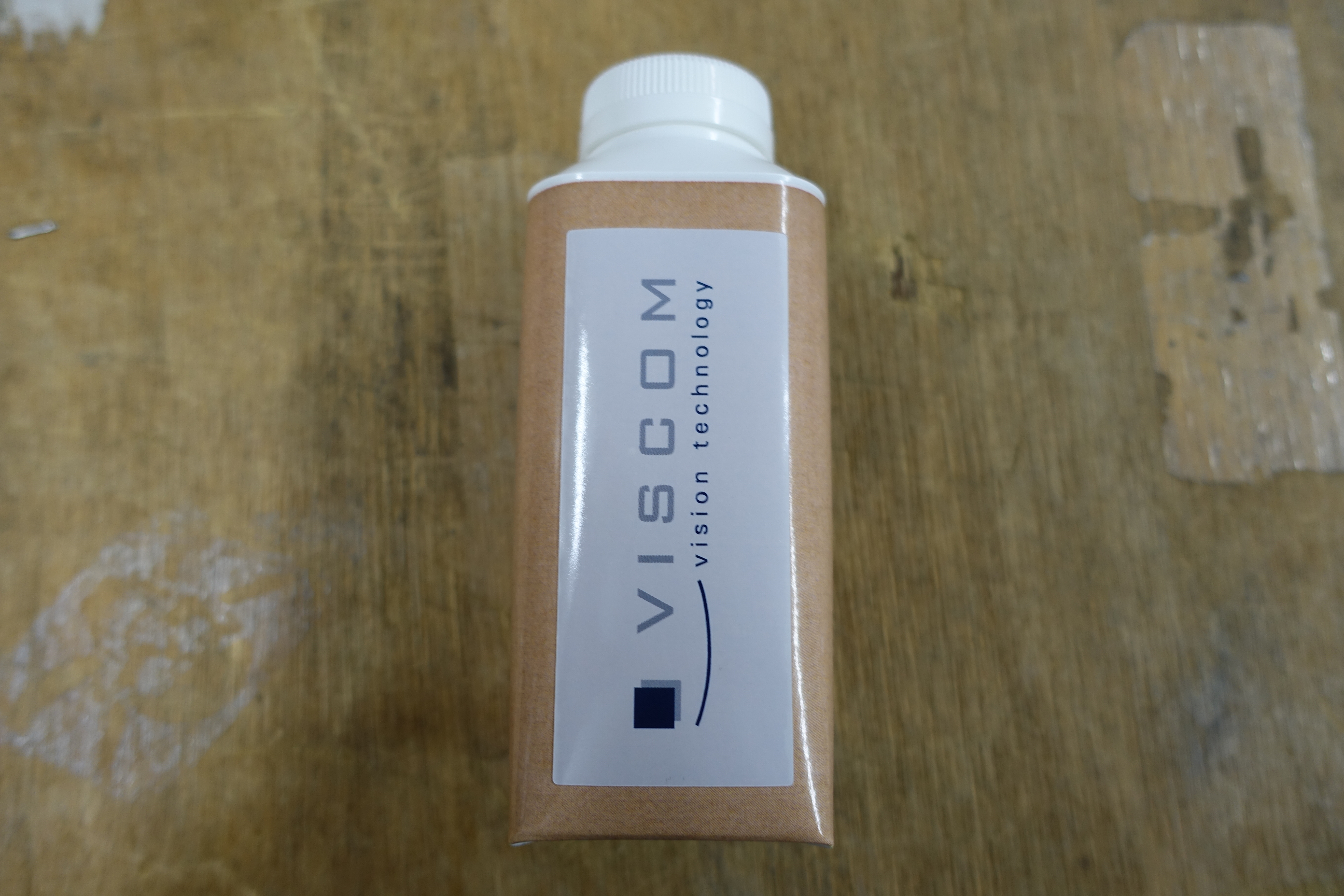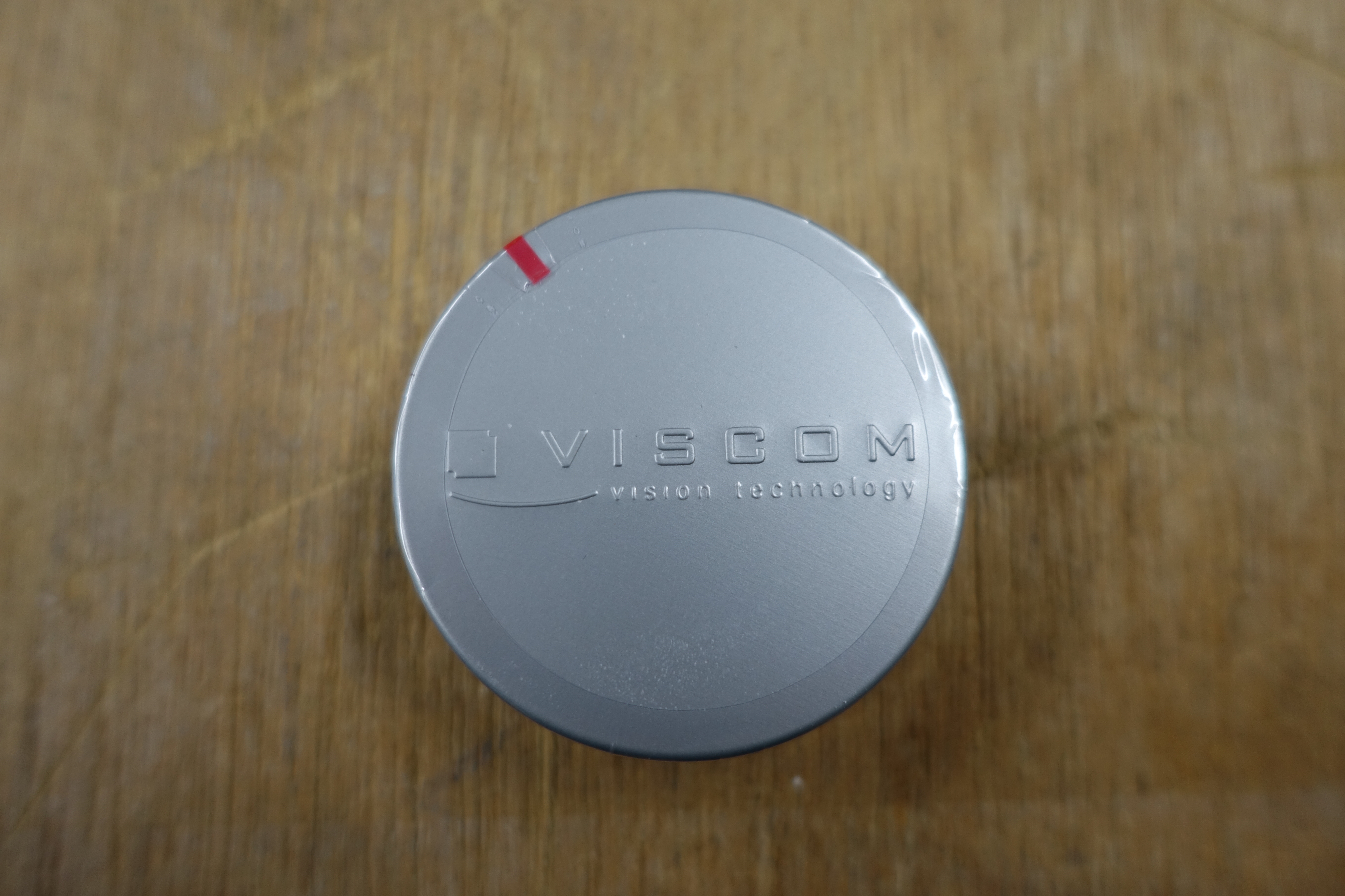 Aufdruck: Viscom Logo, URL, Info Headquarters